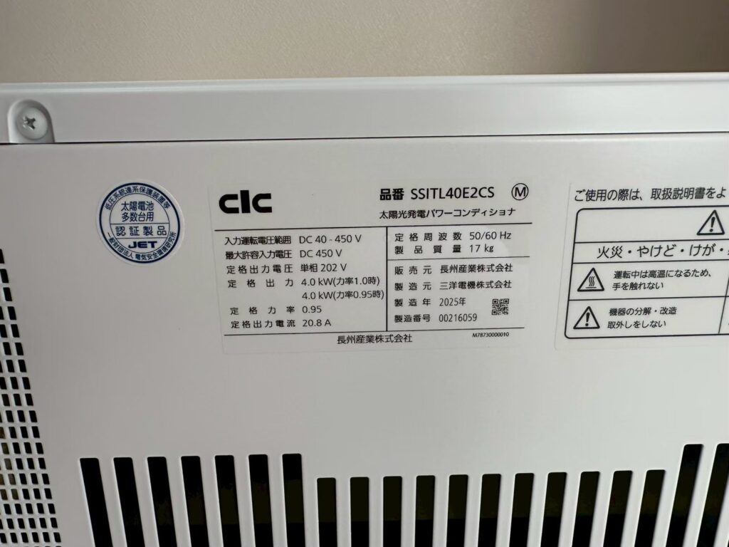 京都府京田辺 パワーコンディショナー「三洋 SSI-TL40A4」から「長州産業 SSITL40E2CS」に交換