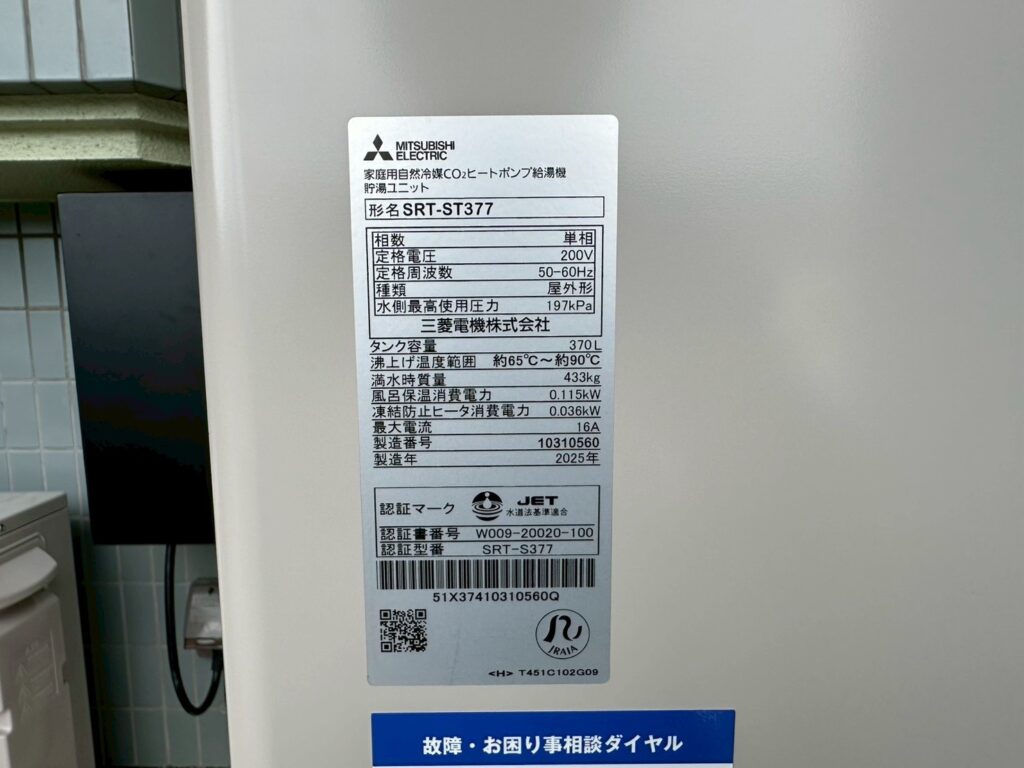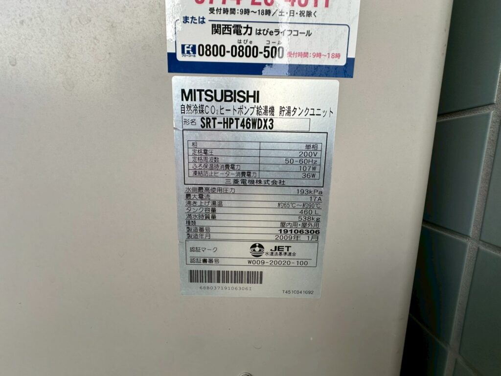- エコキュート 三菱 SRT-HPT46WDX3 撤去