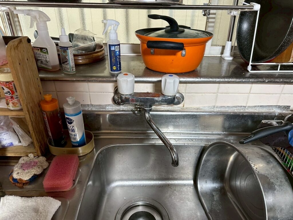 どちらも水漏れまではしていませんでしたが、2ハンドルという「水」、「お湯」のハンドルがそれぞれあるタイプ。