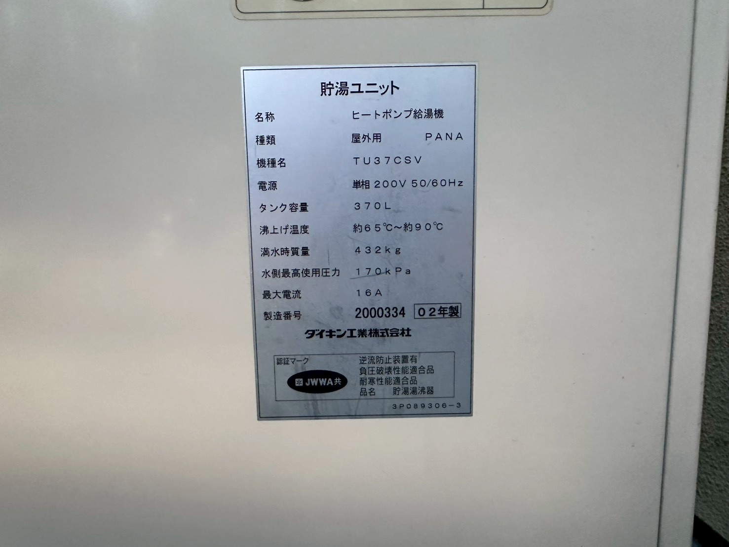 京都府山科区 「ダイキン エコキュートTU37CSV」から「ダイキン エコキュートTUA37ZSV」に交換