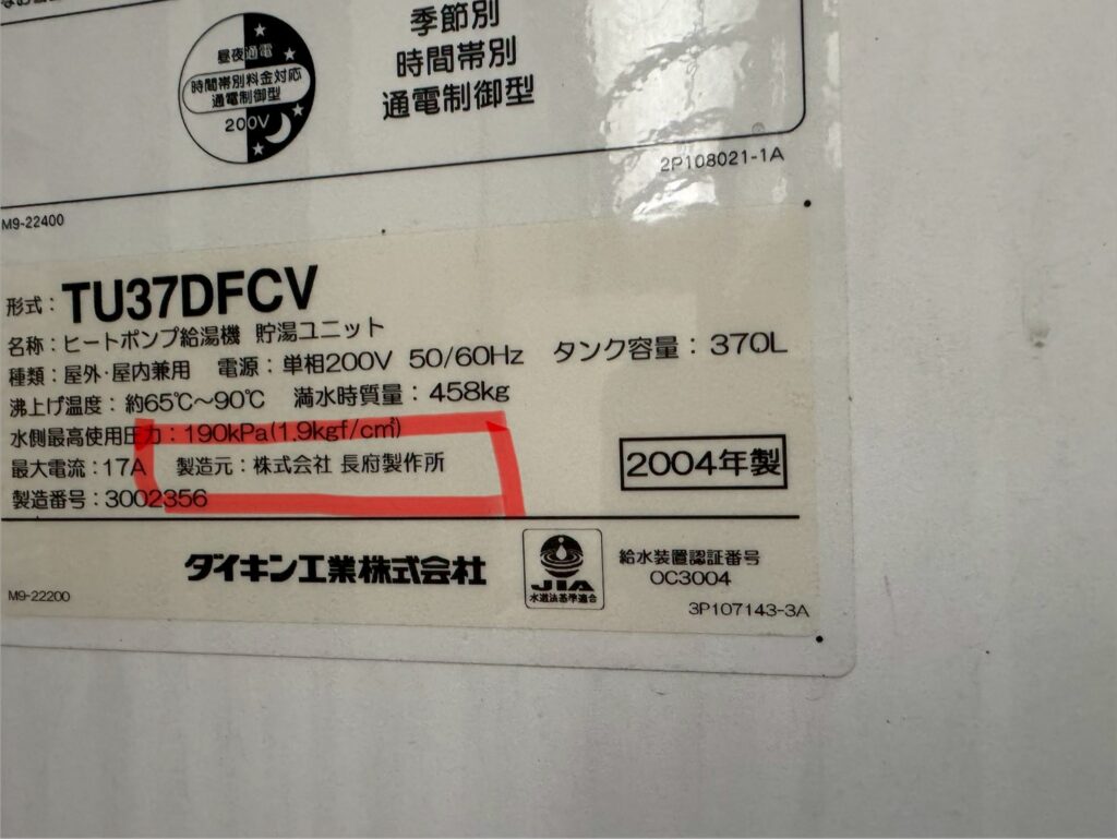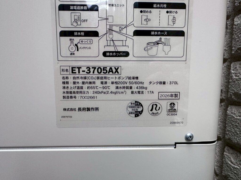 京都府宇治市 「ダイキン EQ37DFCV」から「長府 EHP-3705AX」に交換