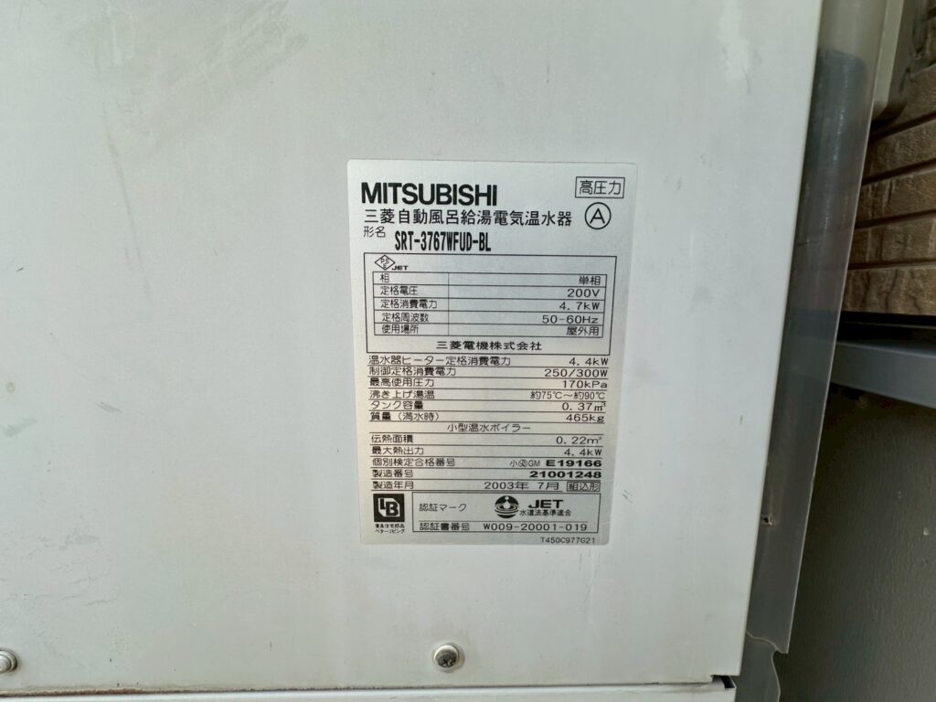 - 電気温水器 三菱 SRT-3767WFUD-BL 撤去