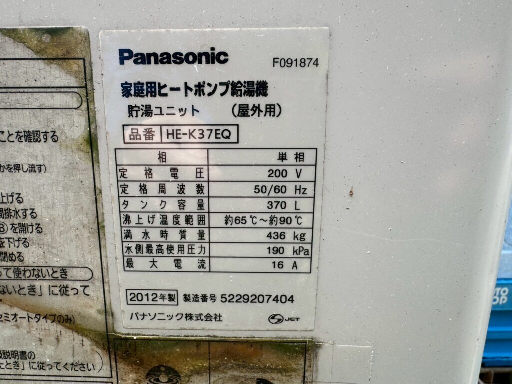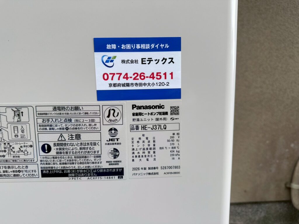 京都府木津川市 エコキュート「Panasonic HE-K37EQS」から「Panasonic HE-J37LQS」に交換